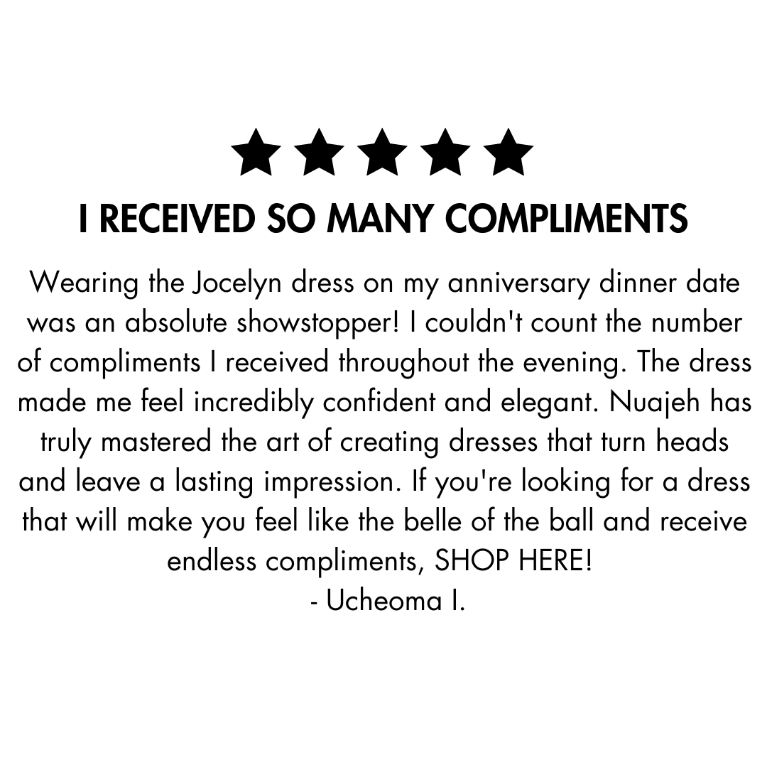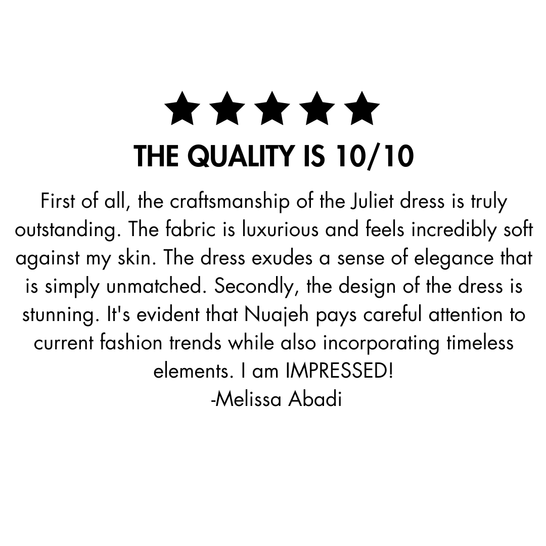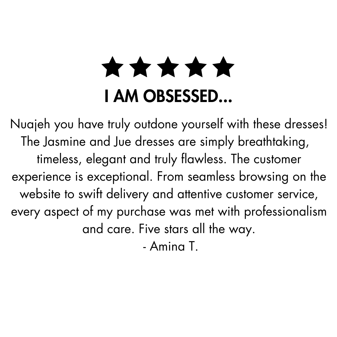 Nuajeh is a slow luxury fashion brand. Meaning we do not produce in masses like fast fashion brands. We take our time to create timeless investment pieces with hand finished embellishes. Please shop intentionally.